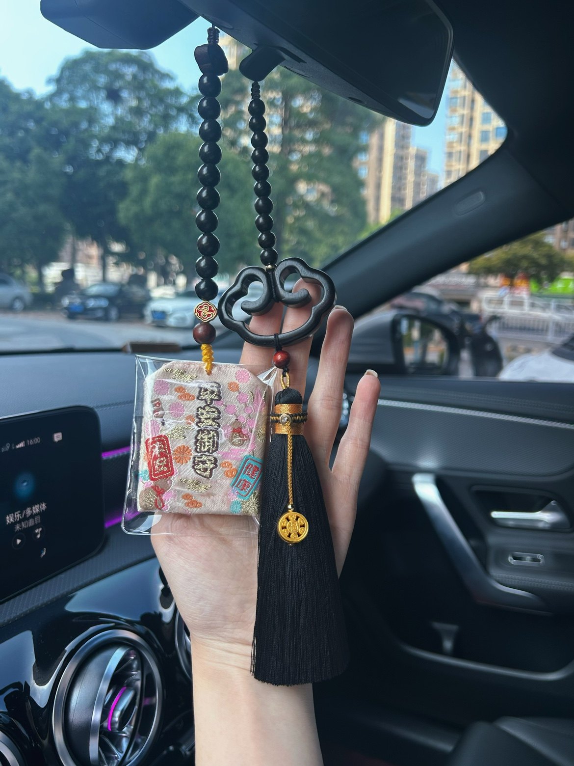 以谦堂御守汽车挂件招财猫黑檀木平安锁交通安全挂饰