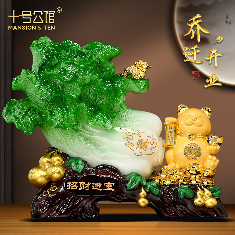 招财进宝白菜摆件招财猫客厅电视柜店铺收银台装饰品乔迁开业礼物
