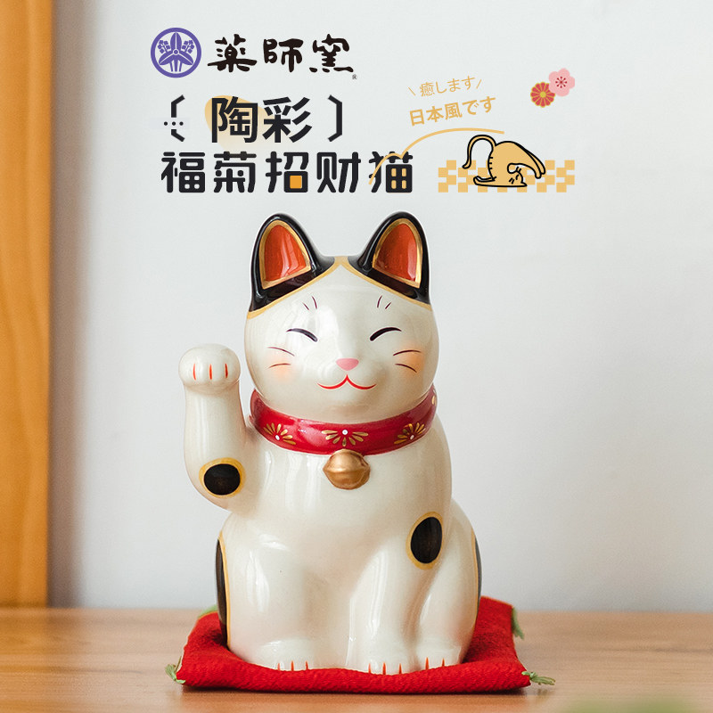 日本药师窑招财猫陶瓷摆件生日礼物结婚开业创意摆件家居饰品