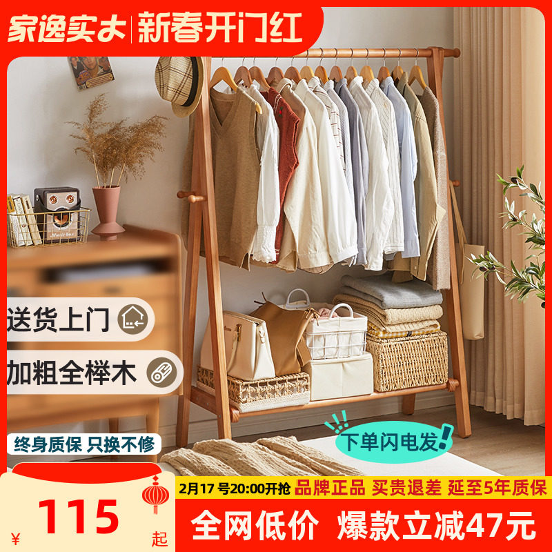 家逸衣帽架全实木挂衣架落地卧室家用衣架室内简易榉木晾衣服架子