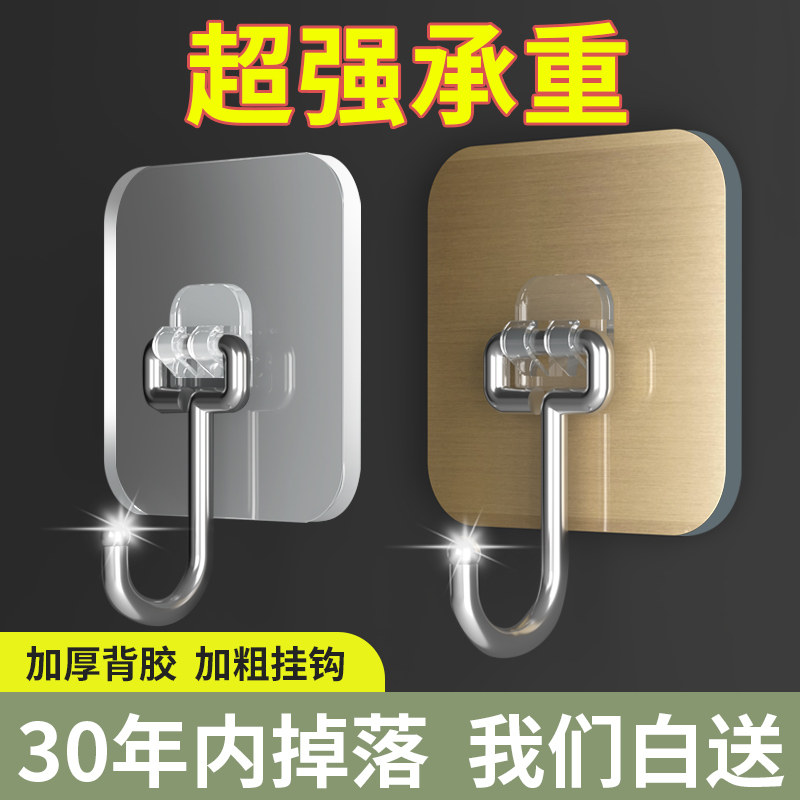 不锈钢挂钩免打孔厨房粘钩墙壁承重金属勾浴室卫生间挂衣服钩衣架