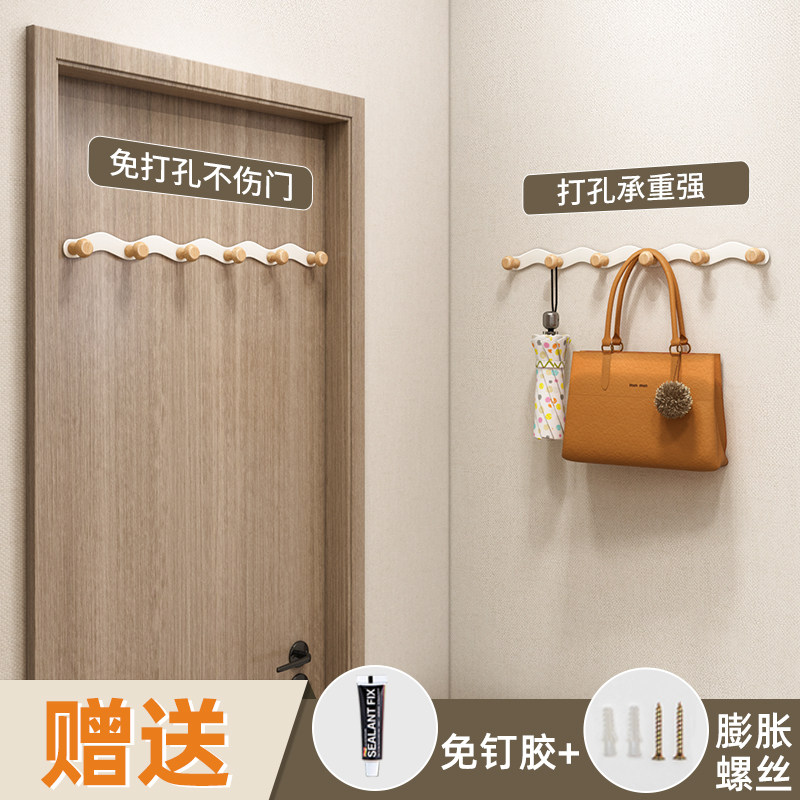 北欧实木挂衣钩入户玄关墙上多功能衣帽钩钥匙挂钩壁式排钩免打孔