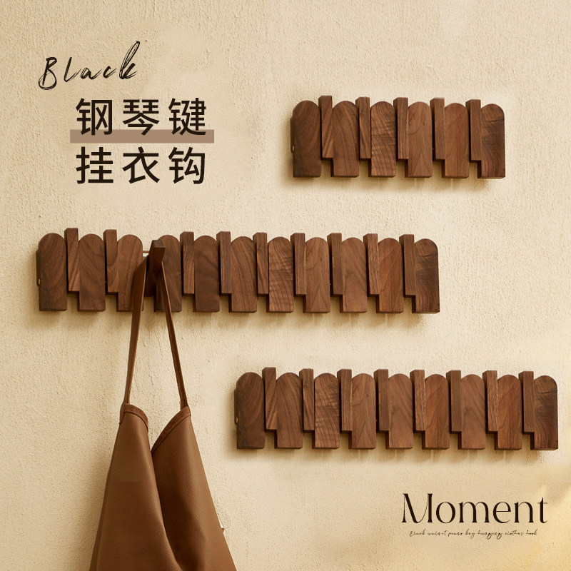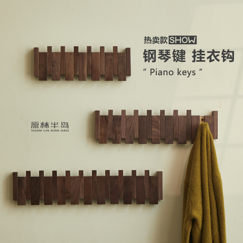 挂衣钩壁挂墙壁进门玄关墙上挂衣架免打孔实木创意琴键衣服挂钩
