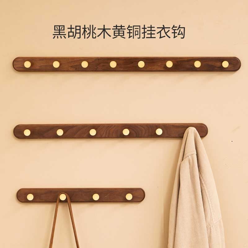黑胡桃实木黄铜挂衣钩进门玄关挂衣架墙上壁挂入户门衣帽衣服挂钩
