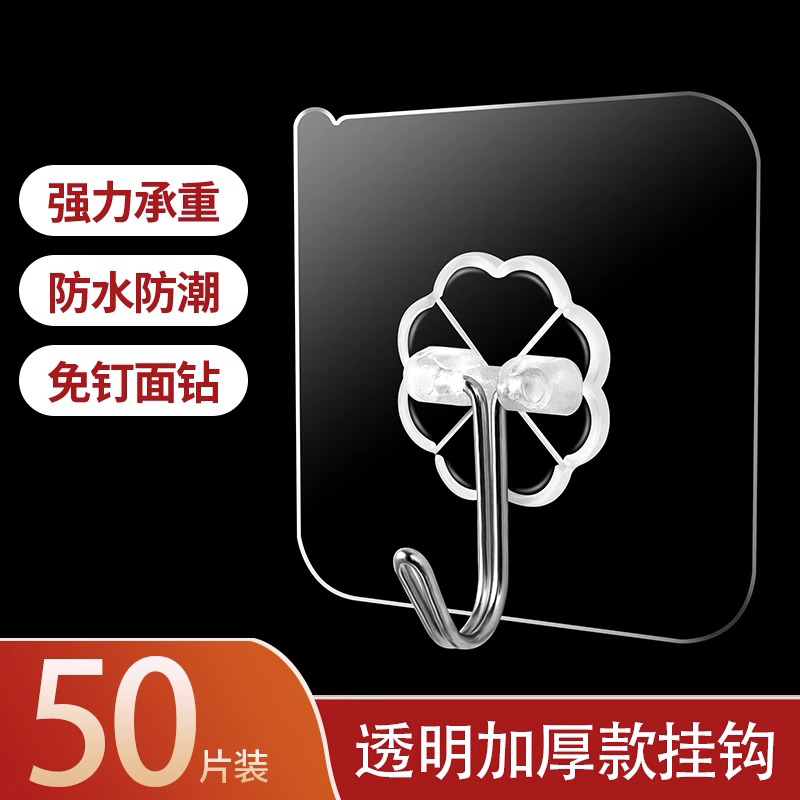 挂钩粘胶强力承重墙壁壁挂无痕钉衣钩粘贴吸盘透明粘钩钩子免打孔