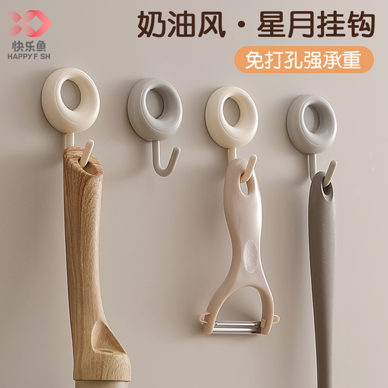 快乐鱼挂钩强力承重无痕粘胶免打孔门后贴墙上挂衣钩厨房浴室粘钩