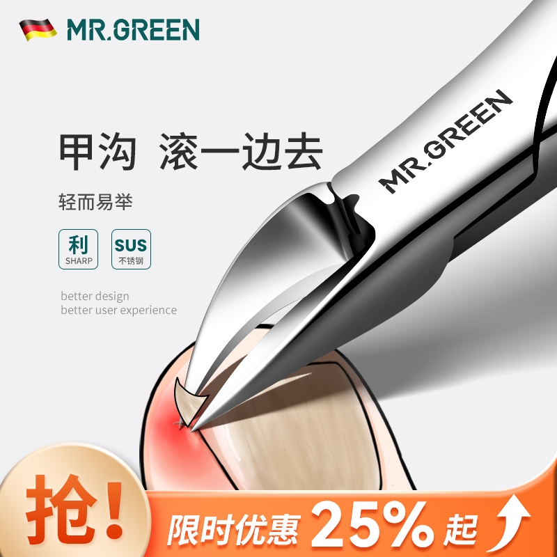 德国MR.GREEN甲沟专用指甲刀炎指甲剪单个尖鹰嘴指甲钳修脚趾嵌甲