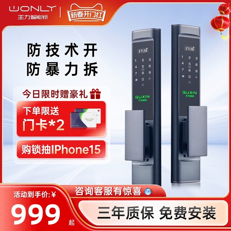 VOC电子门锁家用智能锁防盗门指纹解锁密码锁智能门锁X6锁指纹锁