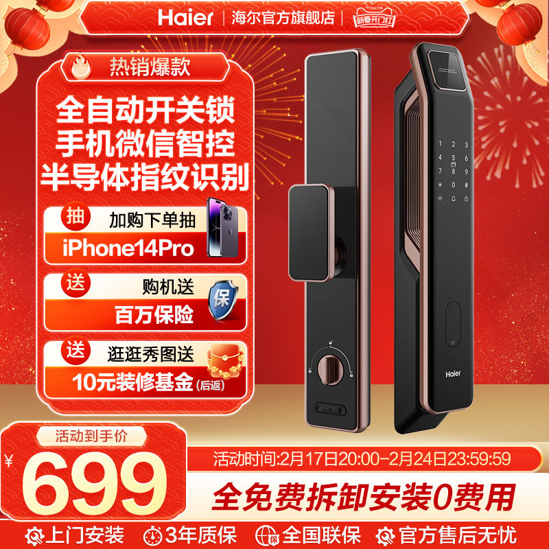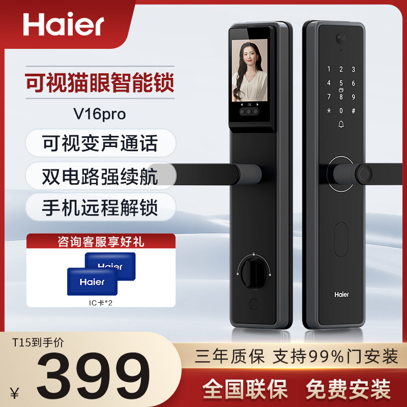 海尔指纹锁智能门锁智能锁16猫眼可视电子锁密码锁家用门锁旗舰店
