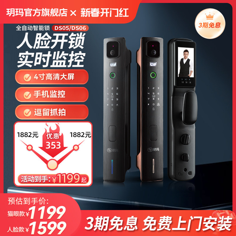 玥玛指纹锁密码家用防盗门全自动人脸识别智能锁十入户大门锁品牌