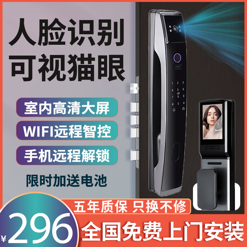 兰博坦克全自动智能猫眼视屏锁防盗门指纹密码刷卡钥匙手机远程锁