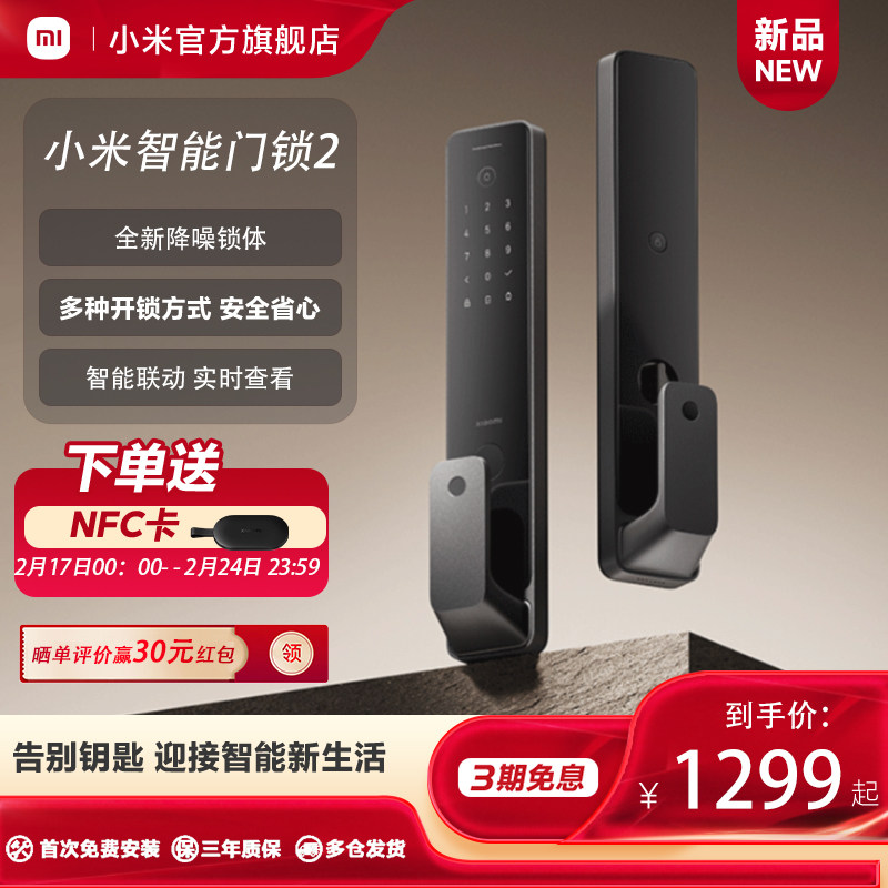 小米智能门锁2 全自动指纹锁密码锁家用防盗门电子智能门锁智能锁