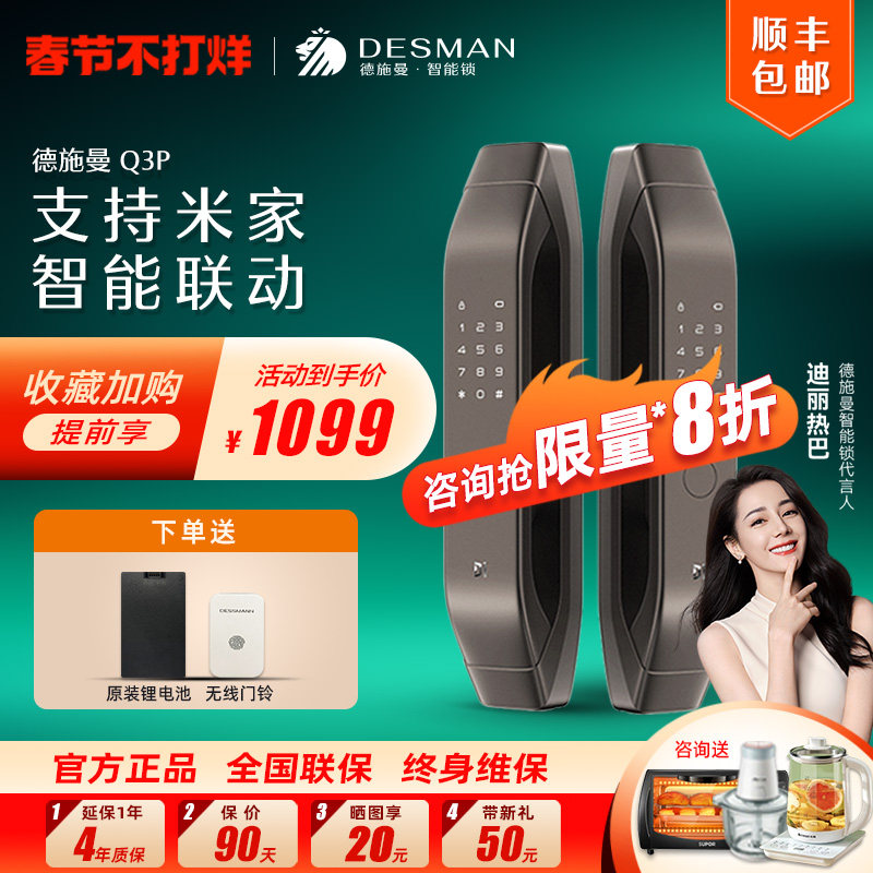 小米智能指纹锁Q3P家用防盗入户门米家霸王德施曼智能门锁旗舰店