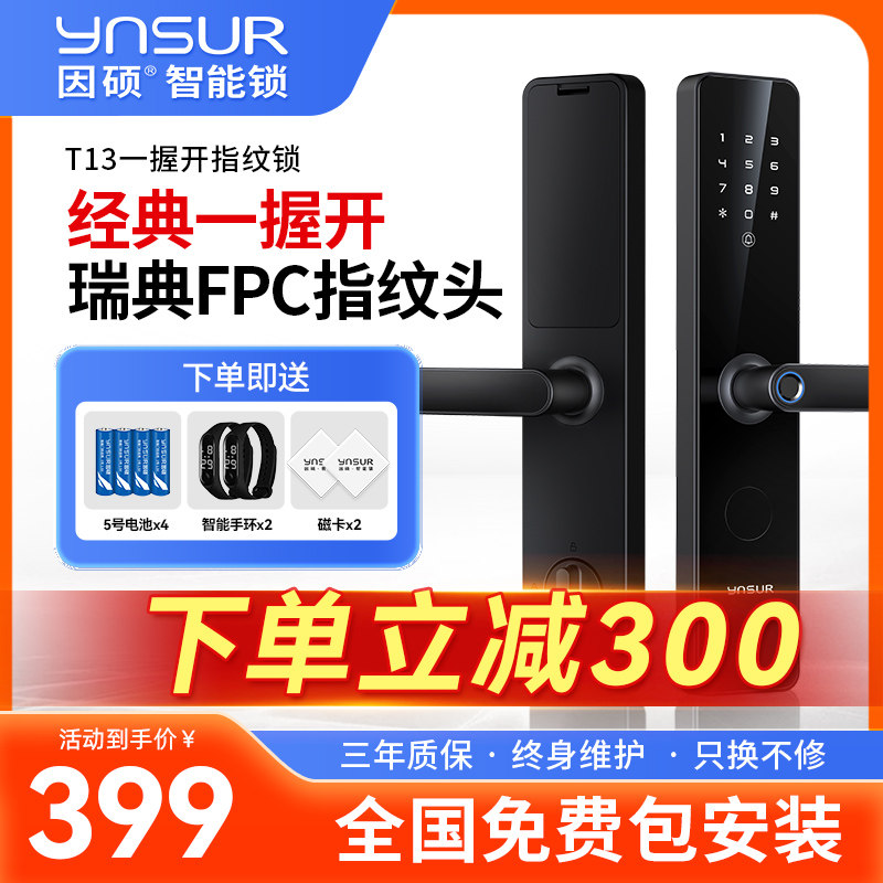 因硕智能门锁指纹锁家用防盗门大门旗舰店T11半自动电子密码锁T13