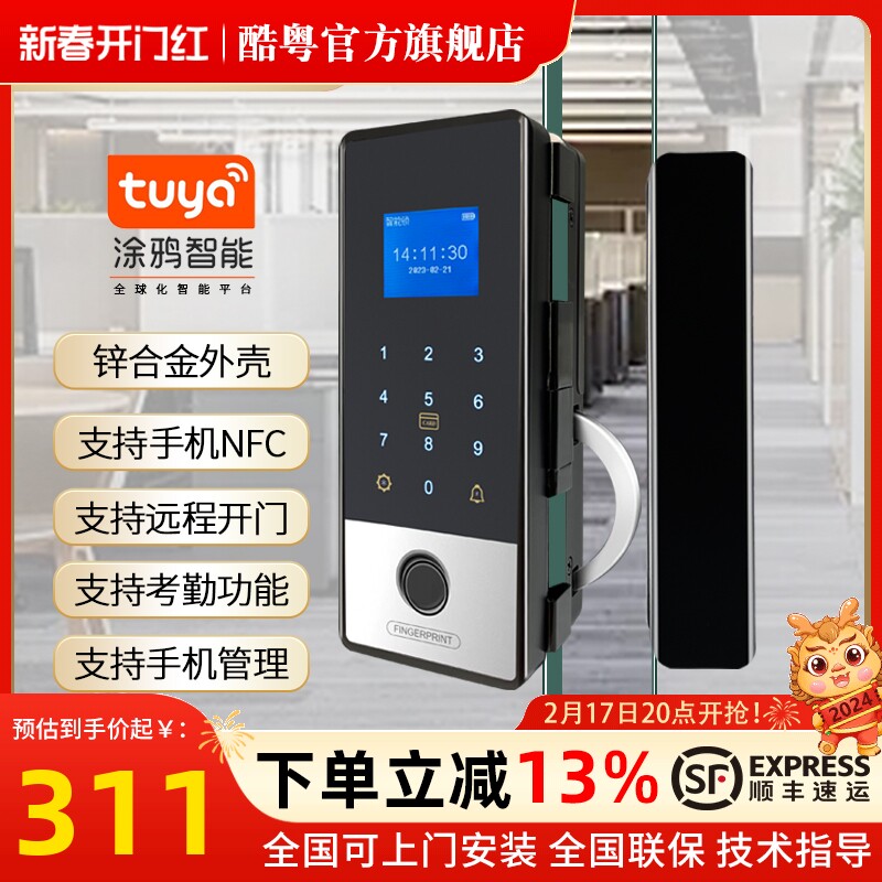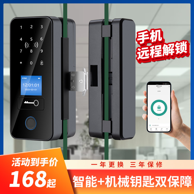 办公室智能锁玻璃门指纹锁免打孔单门双门防盗门锁密码门锁门禁