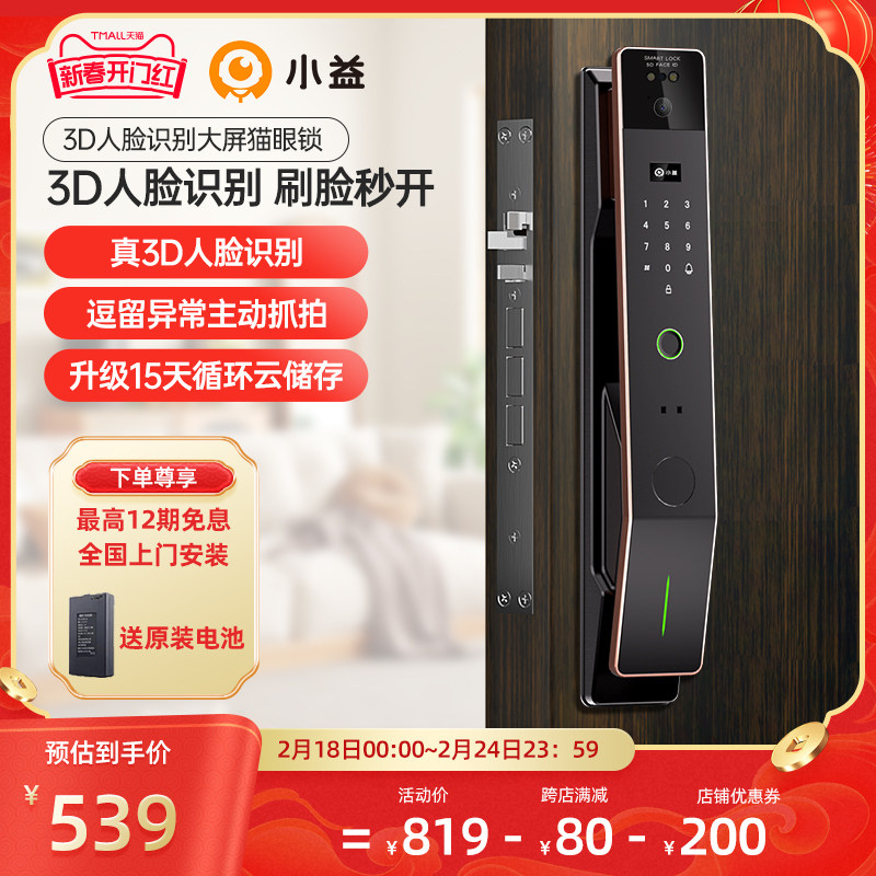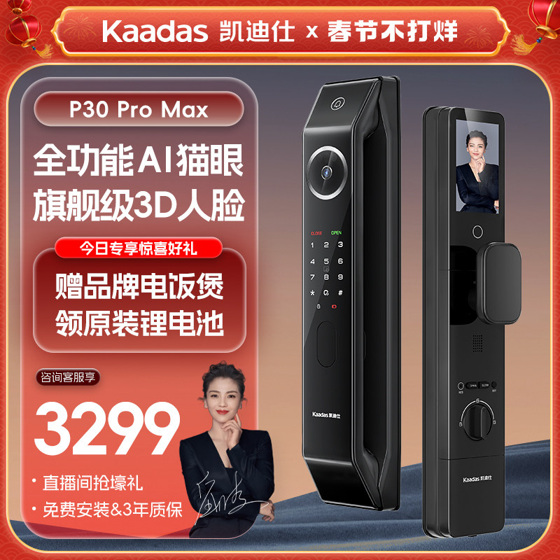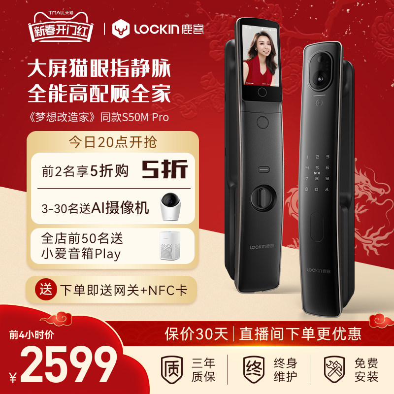 鹿客指静脉密码锁全自动带屏幕猫眼智能锁S50MPro非指纹锁