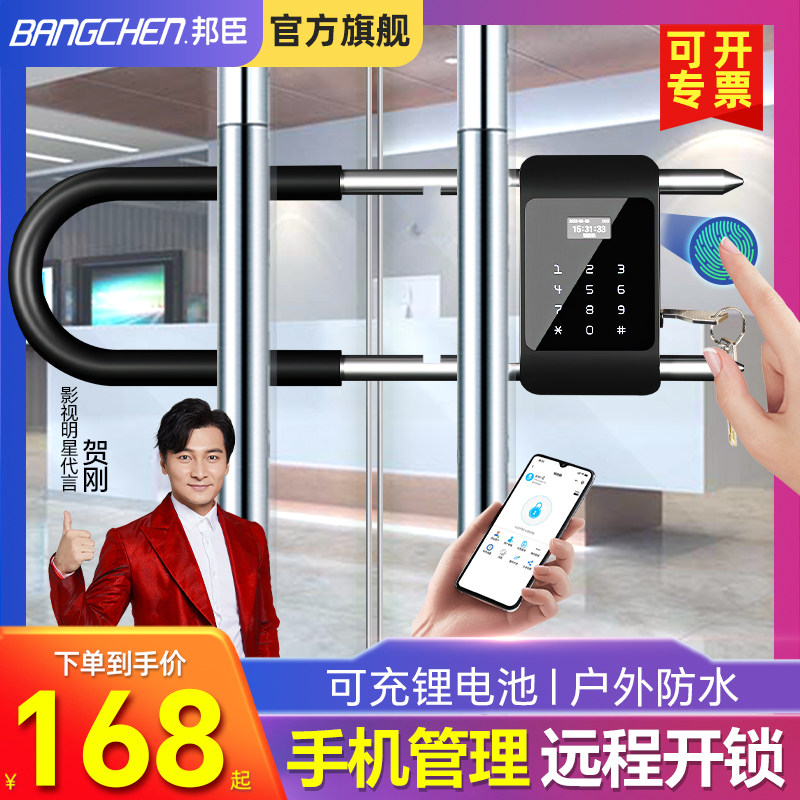 邦臣密码u型锁玻璃门锁双门有框店面商铺智能∪形指纹挂锁电子锁