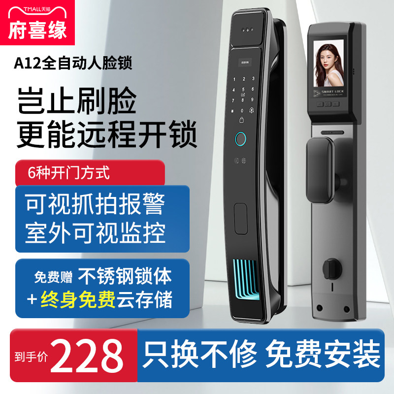 指纹锁密码锁家用智能门锁智能锁电子锁人脸识别公寓入户门全自动