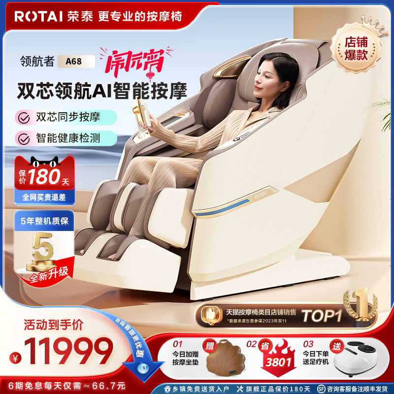 荣泰A68按摩椅家用全身全自动豪华太空舱多功能电动按摩沙发新款