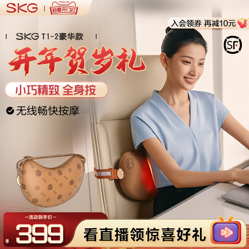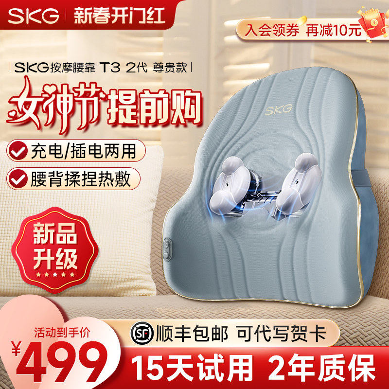 SKG腰部按摩器肩颈背部多功能按摩仪办公室腰靠车载按摩靠垫T5