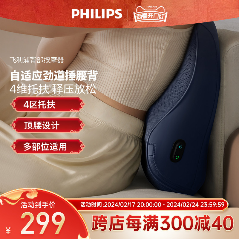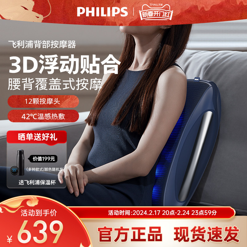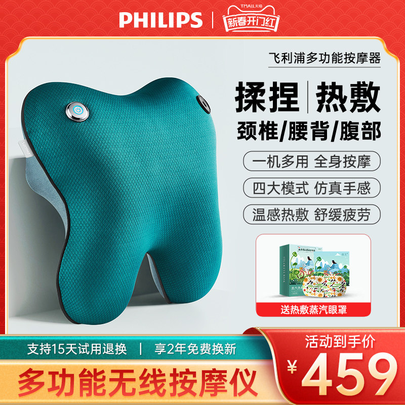 飞利浦按摩器颈椎腰部背部按摩靠垫多功能家用揉捏抱枕送礼佳品