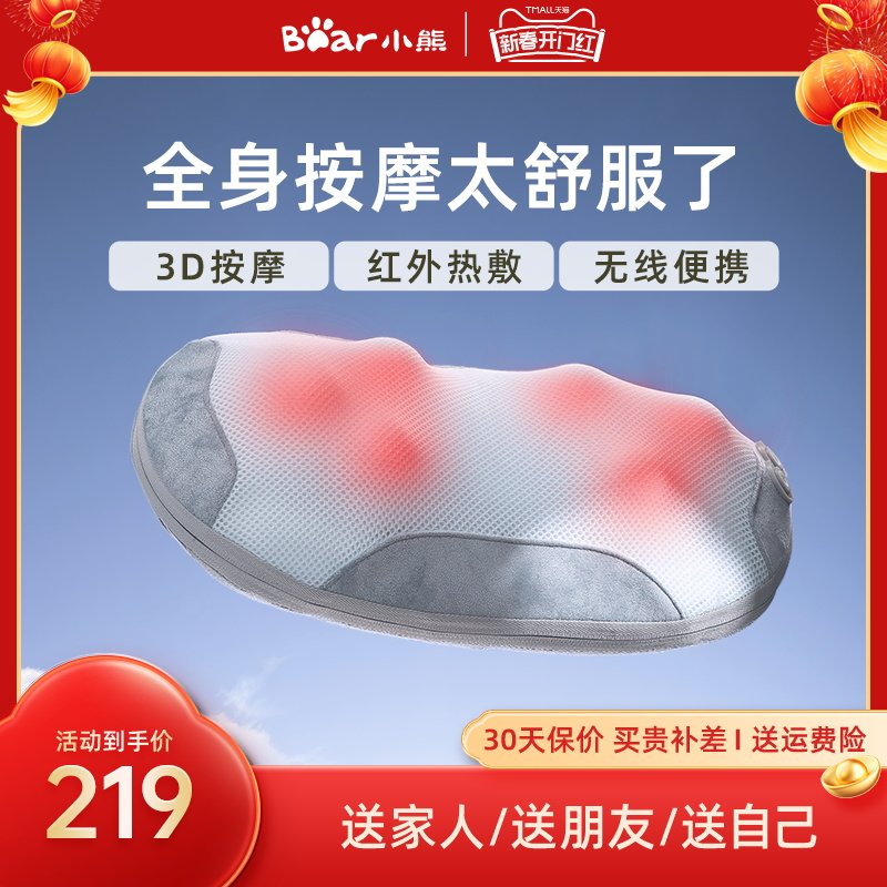小熊颈椎按摩器背部腰部全身靠垫智能脖子肩颈按摩神器揉捏按摩仪