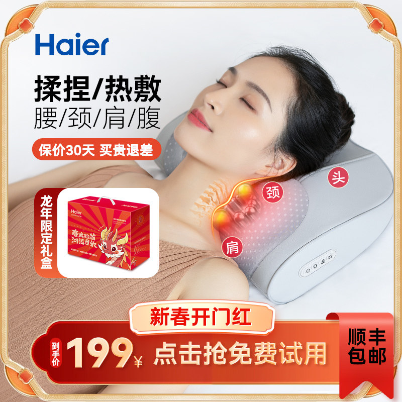 海尔颈椎按摩器颈部按摩仪按摩枕靠垫腰部背部全身揉捏热敷送礼物