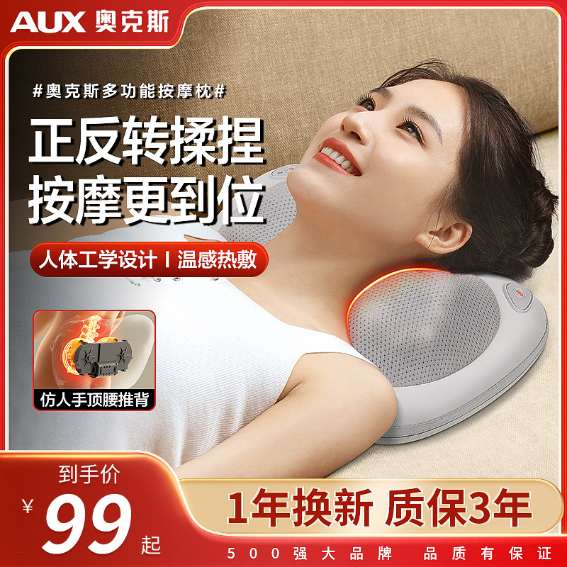 奥克斯按摩器背部腰部颈椎肩劲椎揉捏枕按摩仪家用全身多功能靠垫