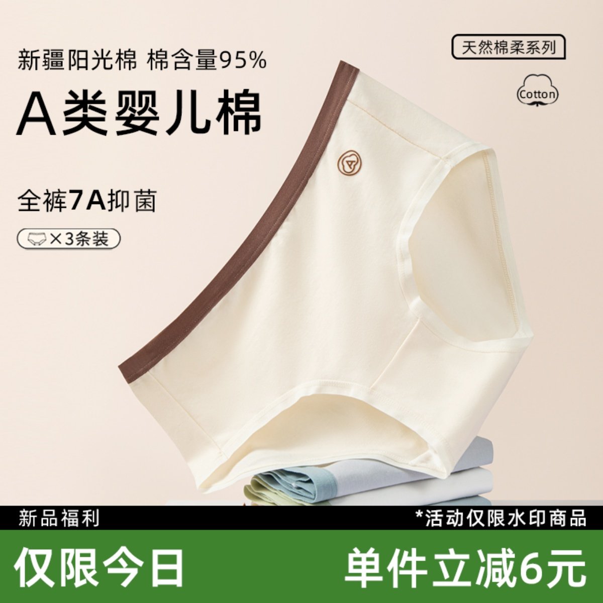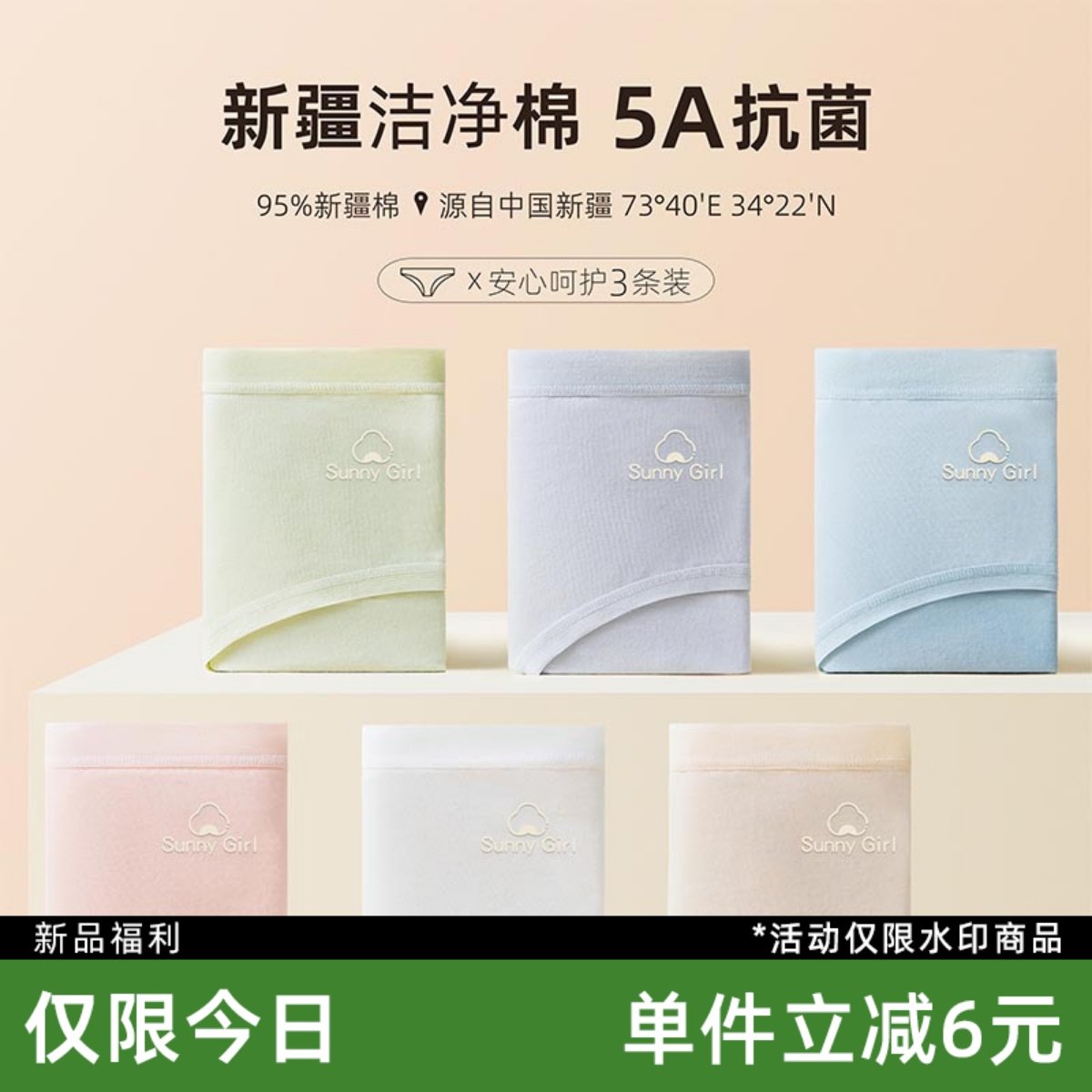 A类新疆婴儿棉女士内裤纯棉女7A抑菌女生无痕全棉裆短裤中腰提臀