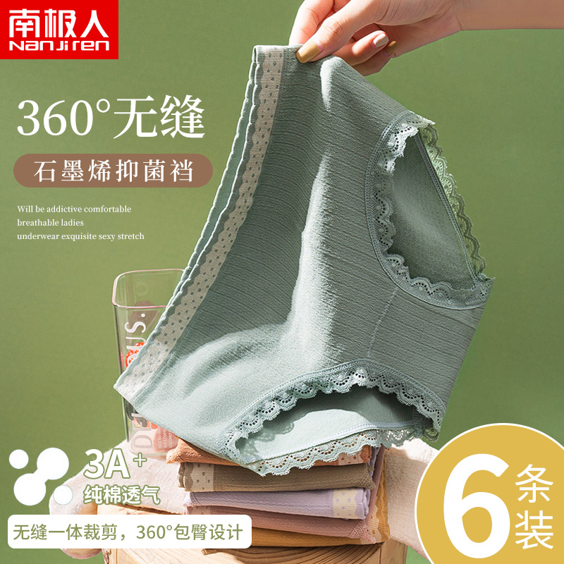 南极人无缝一体内裤女石墨烯抗菌纯棉裆收腹提臀性感大码三角裤头