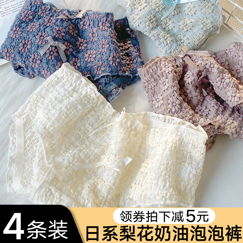 梨花奶油泡泡日系少女内裤纯棉裆抗菌透气中腰三角裤提臀高弹裤头