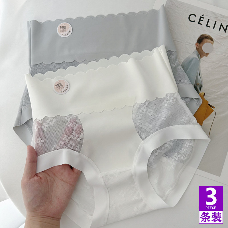南极人冰丝无痕内裤女夏薄透气高腰收腹提臀抗菌纯棉裆大码三角裤