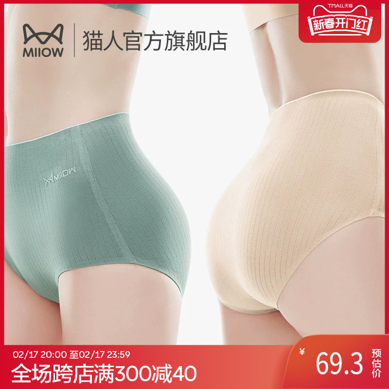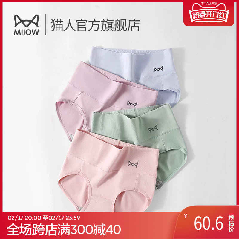 猫人纯棉女士内裤石墨烯抑菌高腰收腹提臀透气无痕妈妈三角短裤头