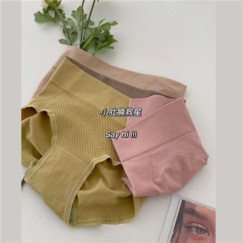 高腰内裤女100%纯棉裆无缝中腰抗菌提臀收腹蜂巢无痕女式三角裤头