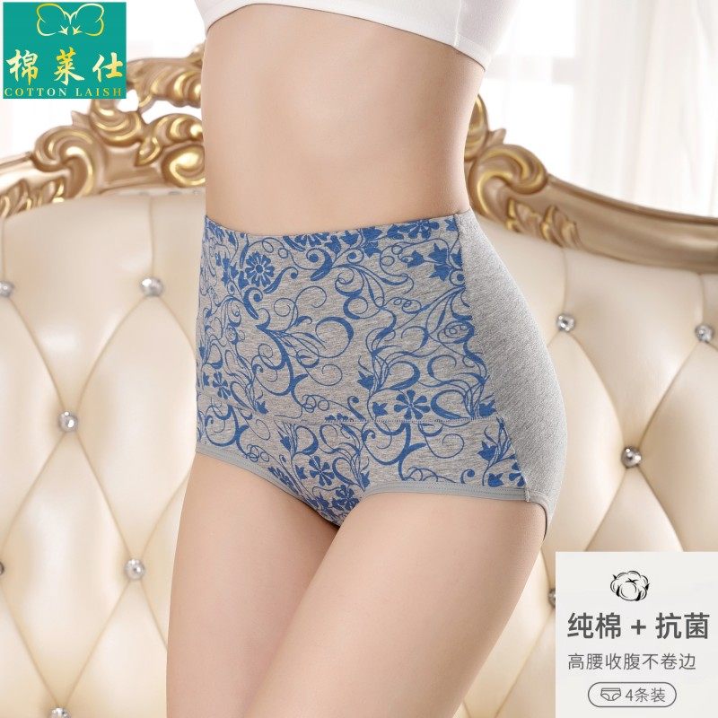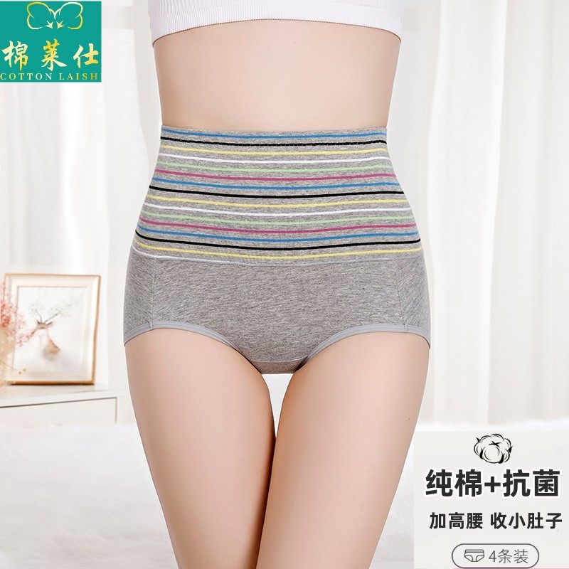 4条装 高腰纯棉内裤女士收腹提臀抗菌纯棉大码收小肚子产后无痕