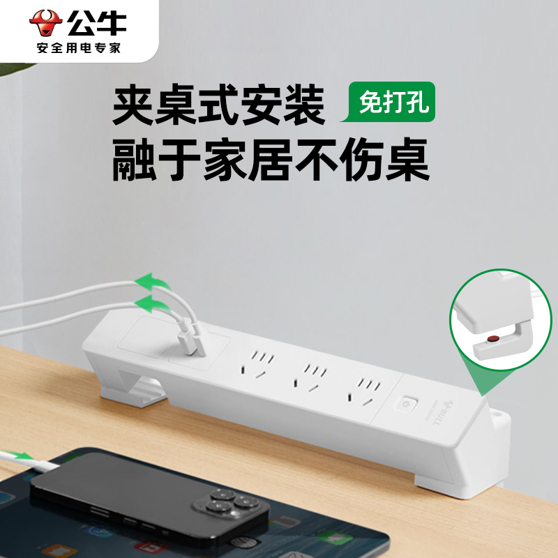 公牛嵌合式桌面插座USB多功能免开孔书桌家用办公插排排插插线板