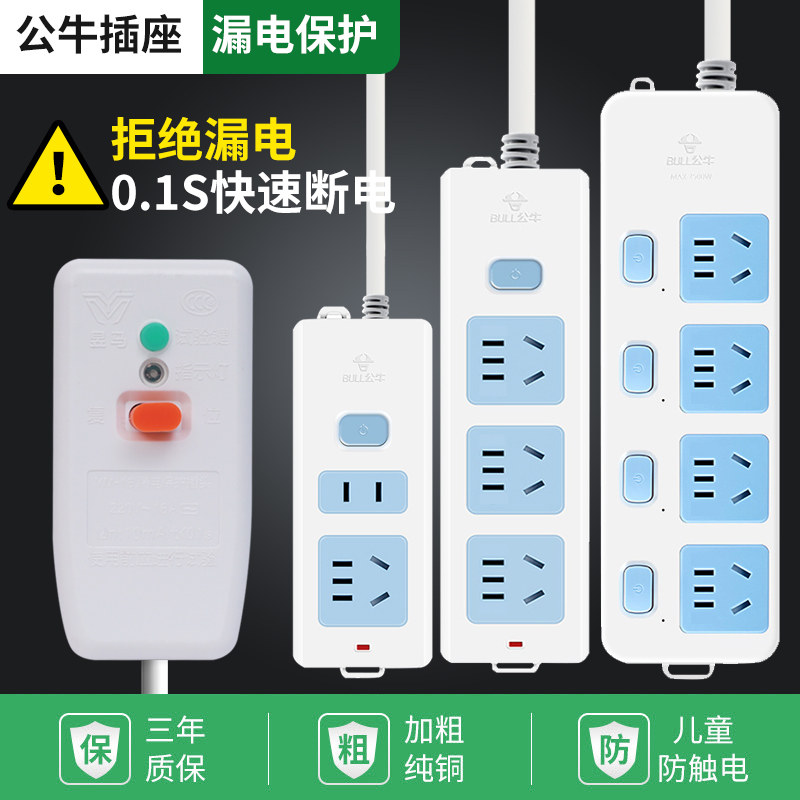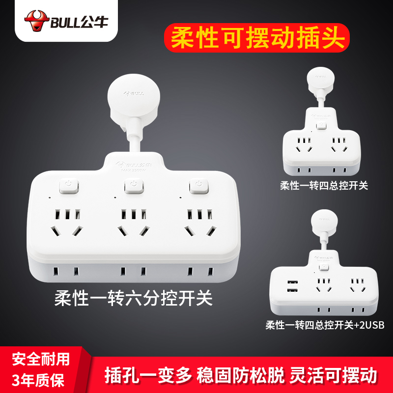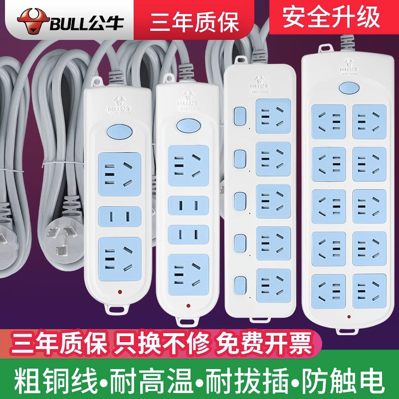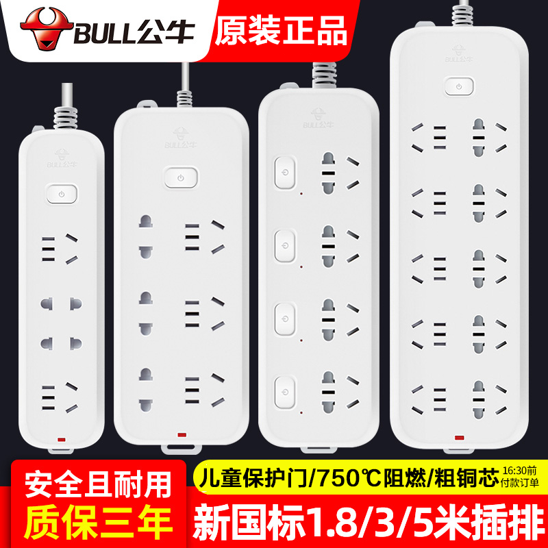 公牛插座带线拖接线板家用宿舍电源插板多用孔位排插电插排3/5米