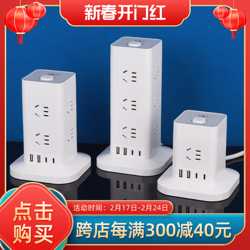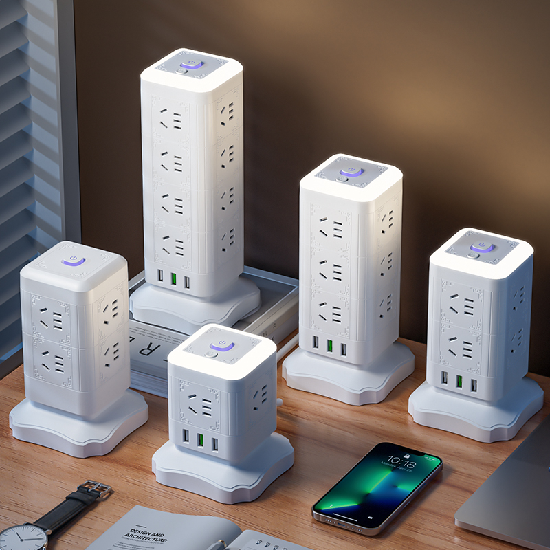 多功能USB立式插座塔式插座拓展插排带长线多插位排插座办公桌面