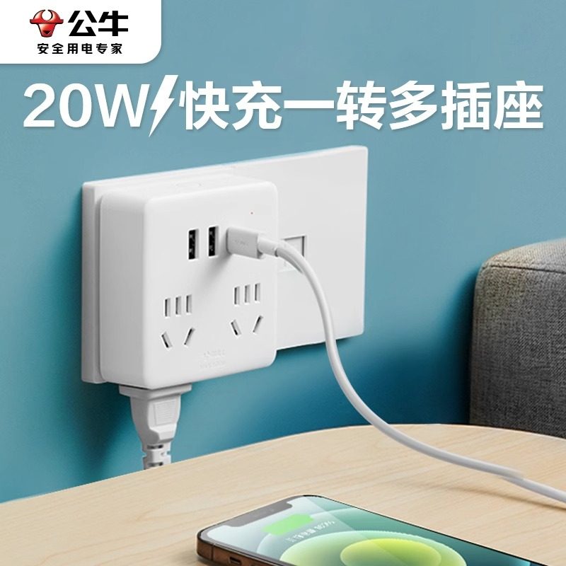 公牛魔方PD快充usb插座插排插线板多用功能20W充电排插多孔接线板