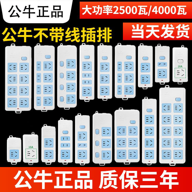公牛插座插排不带线排插无线插板电源接线板多插位弱电箱专用正品