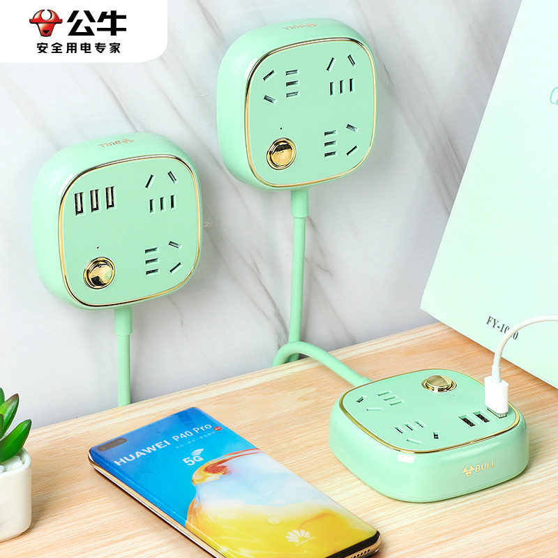 公正品牛插座快充USB多孔可爬墙多用多功能家用带线插排接线板长