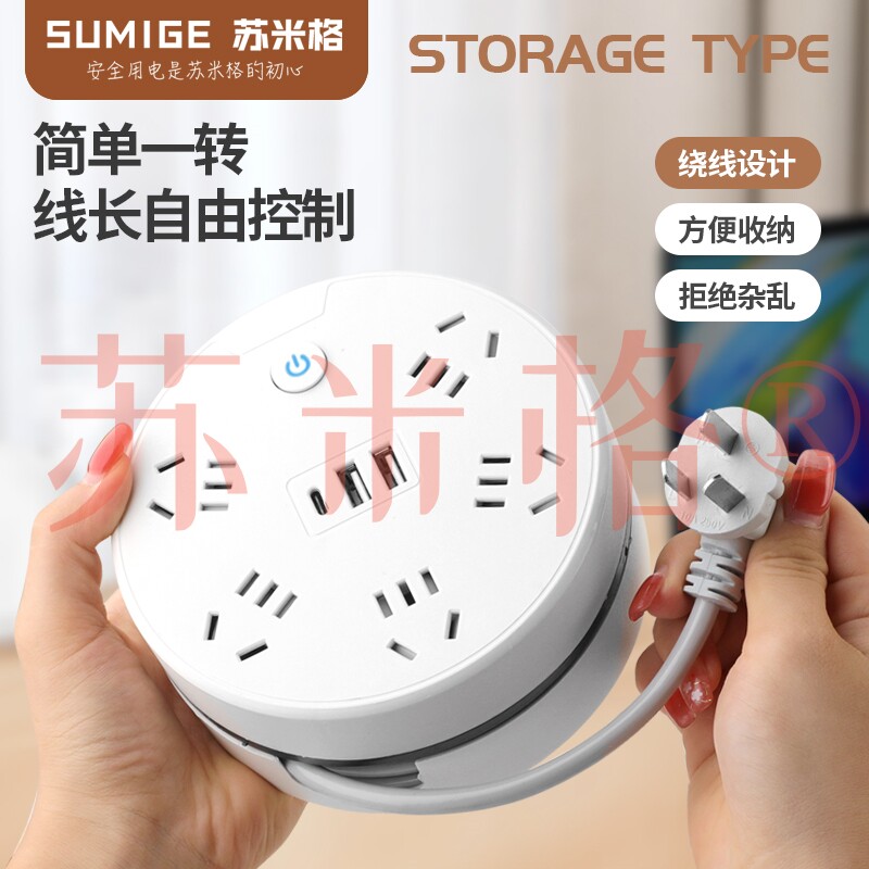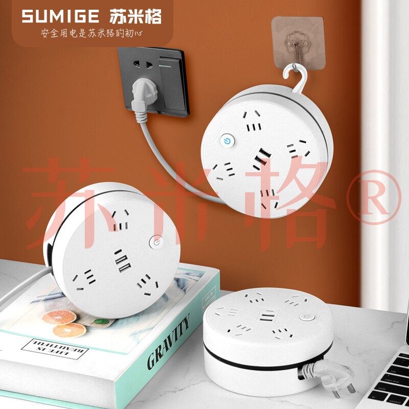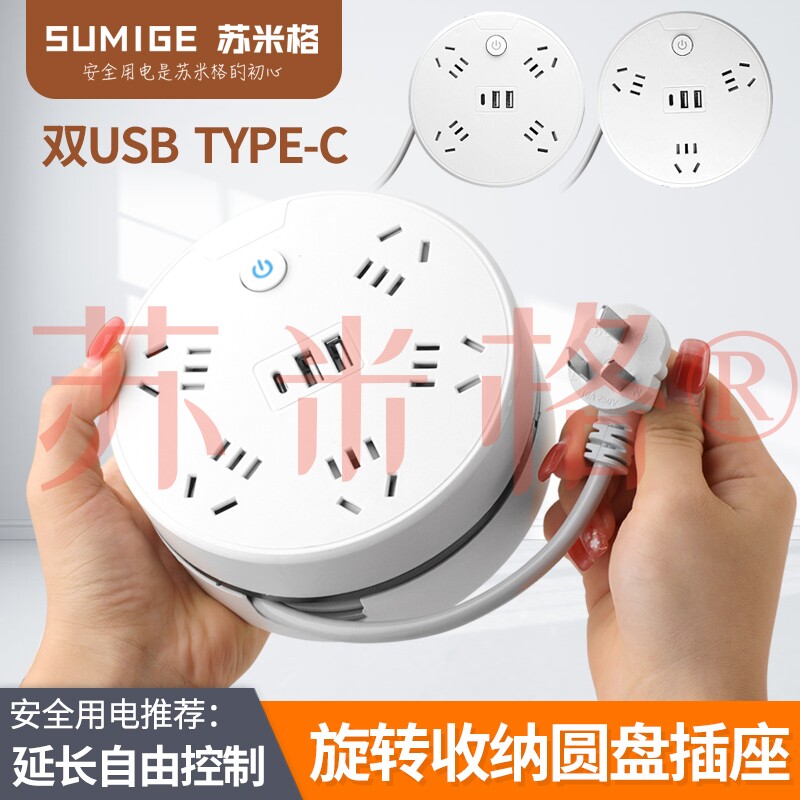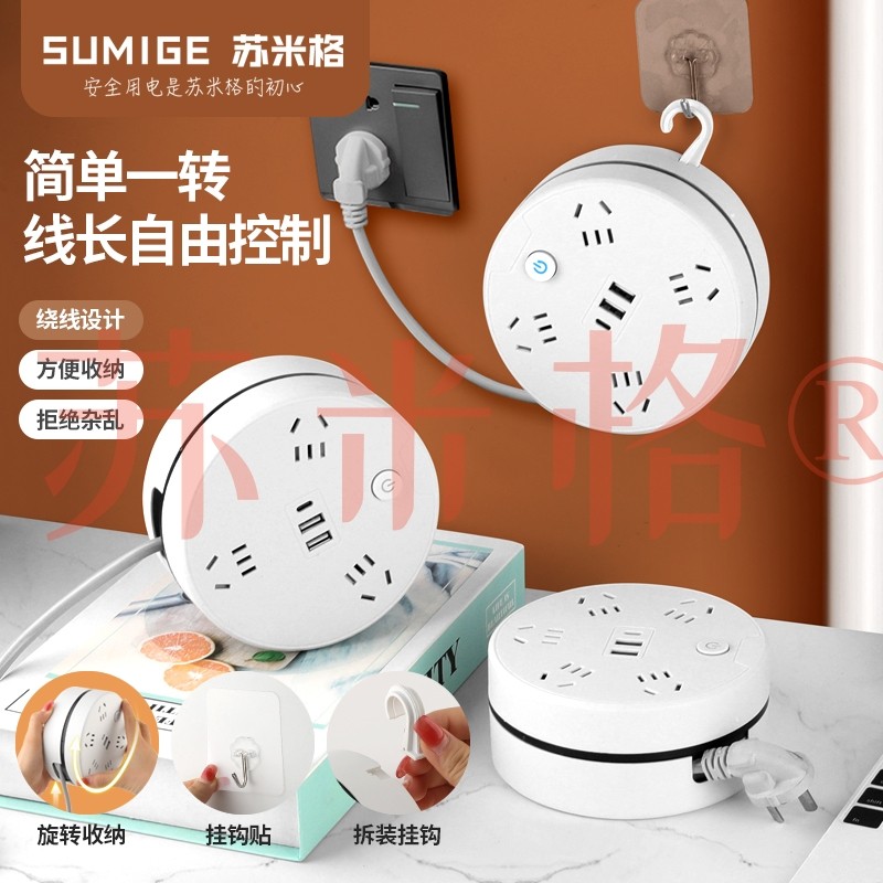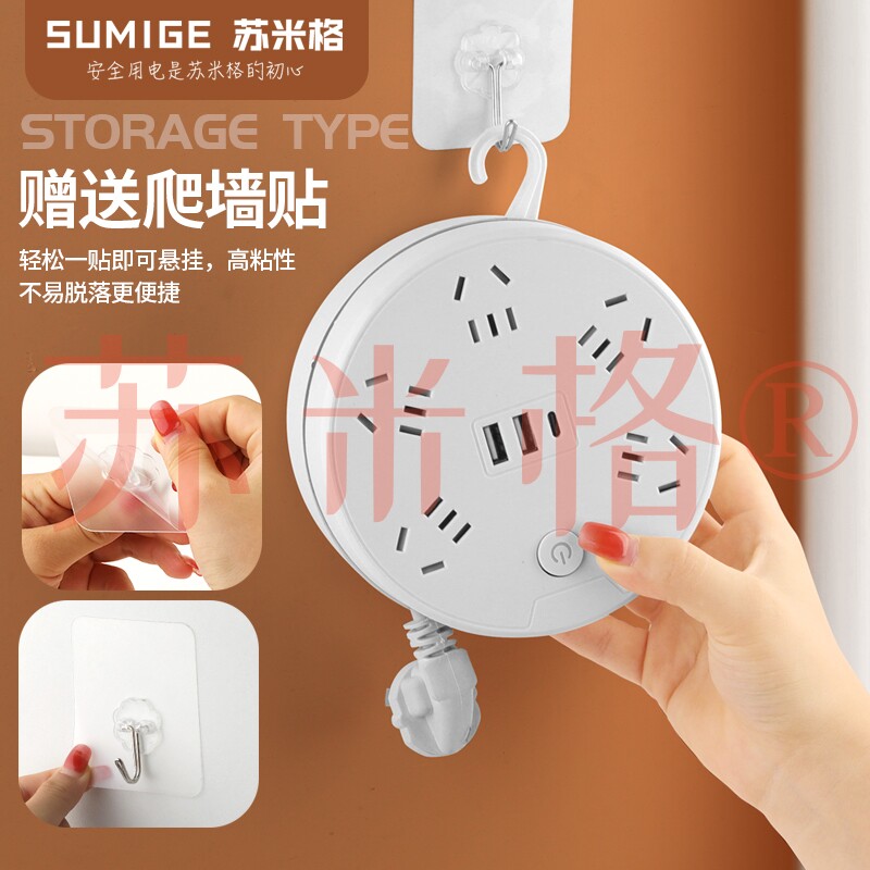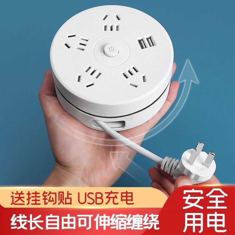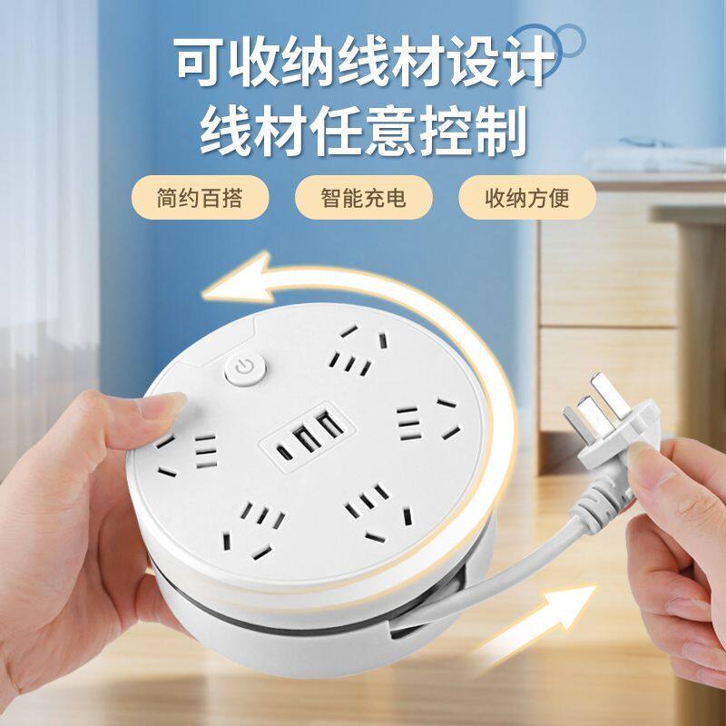 可收纳插座带线插座家用电插排带快充usb充电转换器插板可伸缩线
