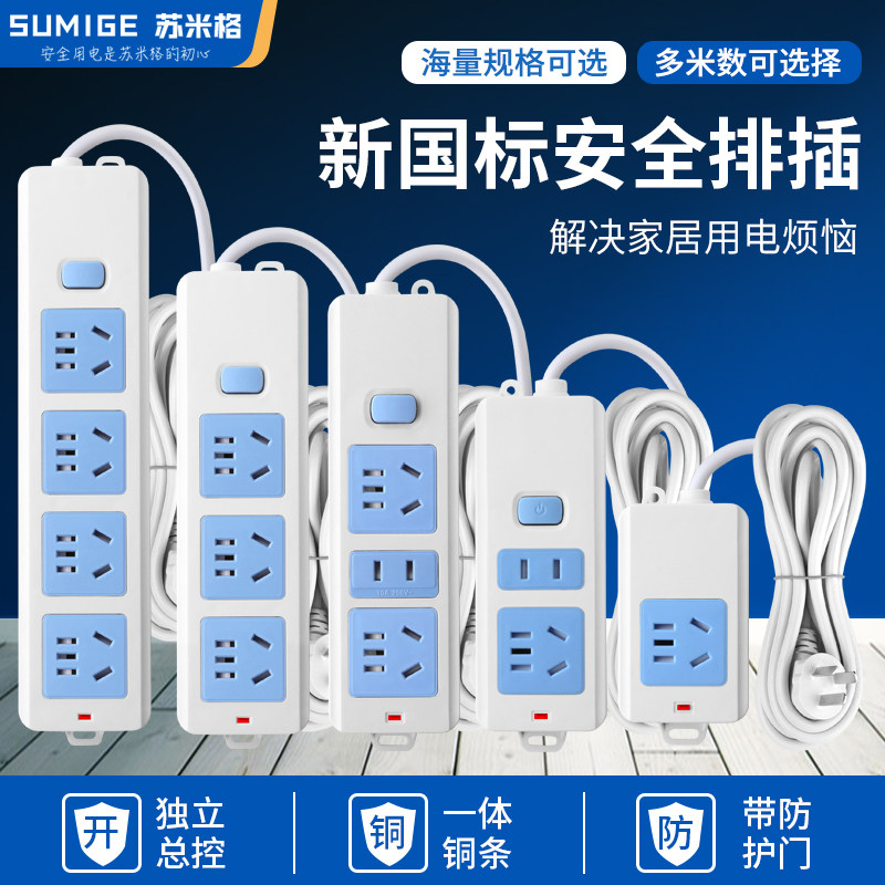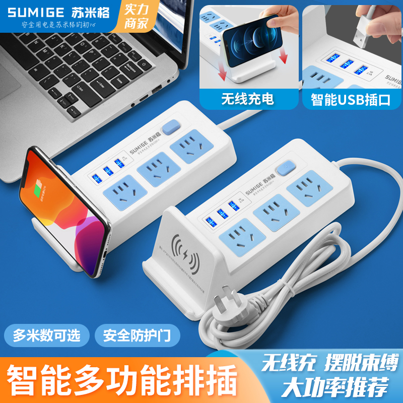 纯铜插座板排插带线家用接线板无线拖线插板座多功能大功率插排座