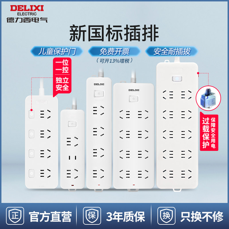 德力西国标插座插排插线板家用拖线板电源插板转换器多功能防过载