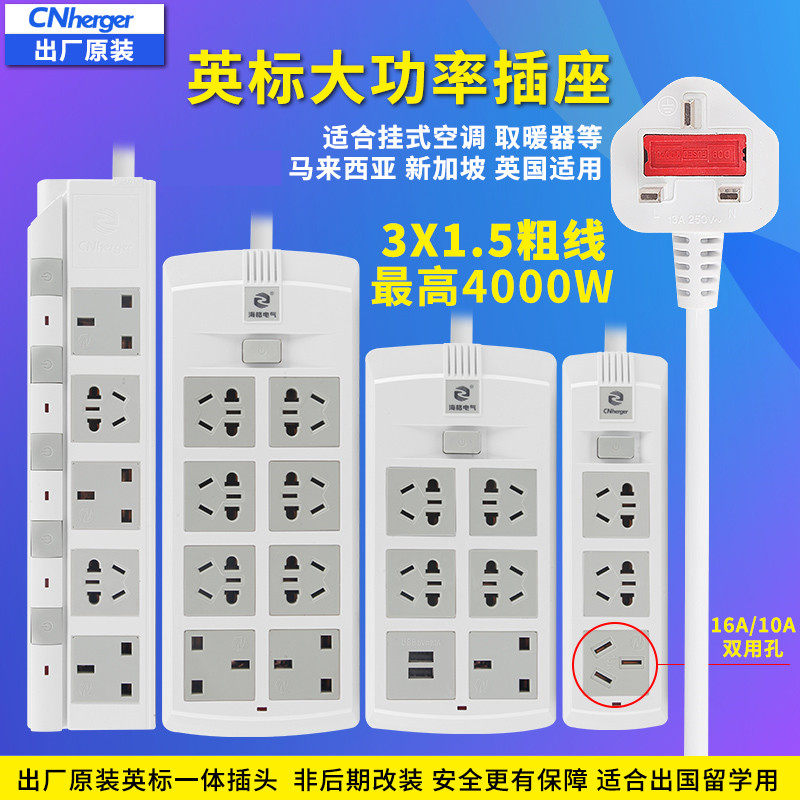 英标插座大功率1.5平方粗线英国用港版空调16a英式转换插排插线板