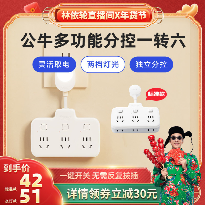 公正牛插座带无线快充排插多用USB多口插排多功能家用办公用正品