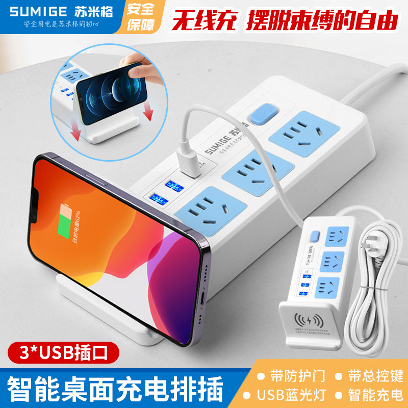 【无线充电】60W.USB插座插排插线板拖接线板电源延长线魔方多用