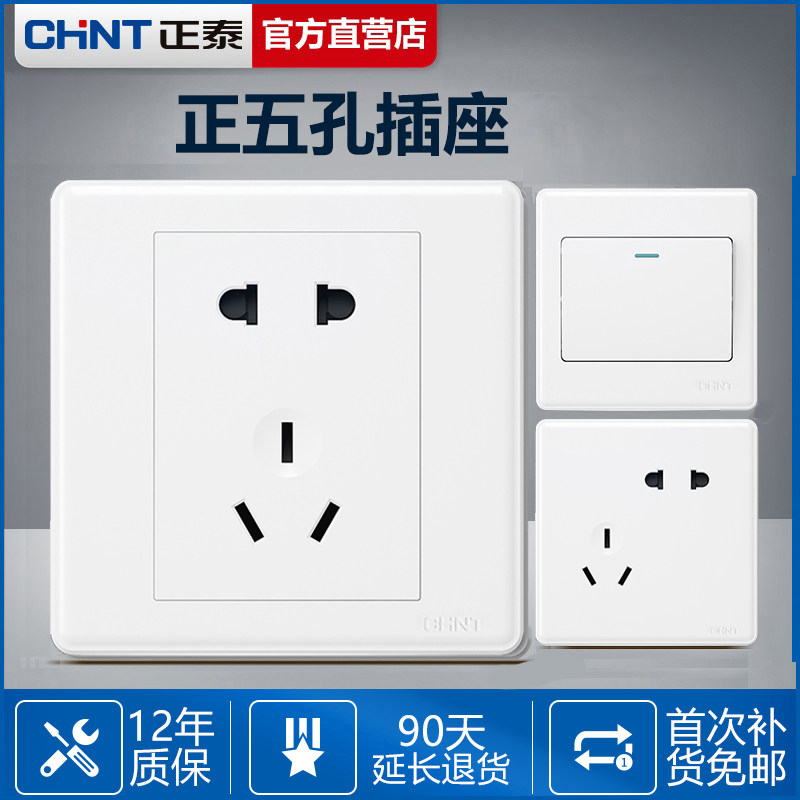 正泰开关插座面板86型家用墙壁5眼五孔扦插板墙体内插排暗线正太