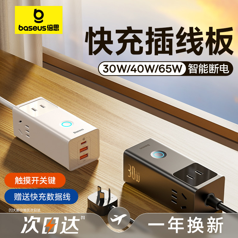 倍思快充插线板usb插座30w桌面65w氮化镓长线多功能排插插板旅行