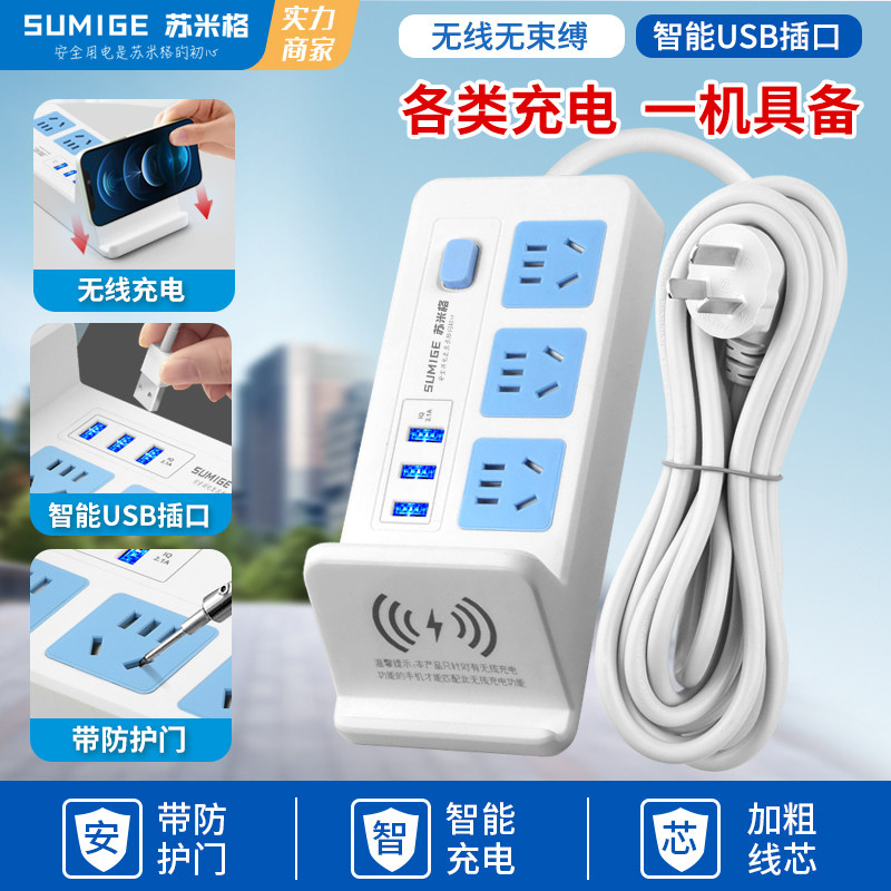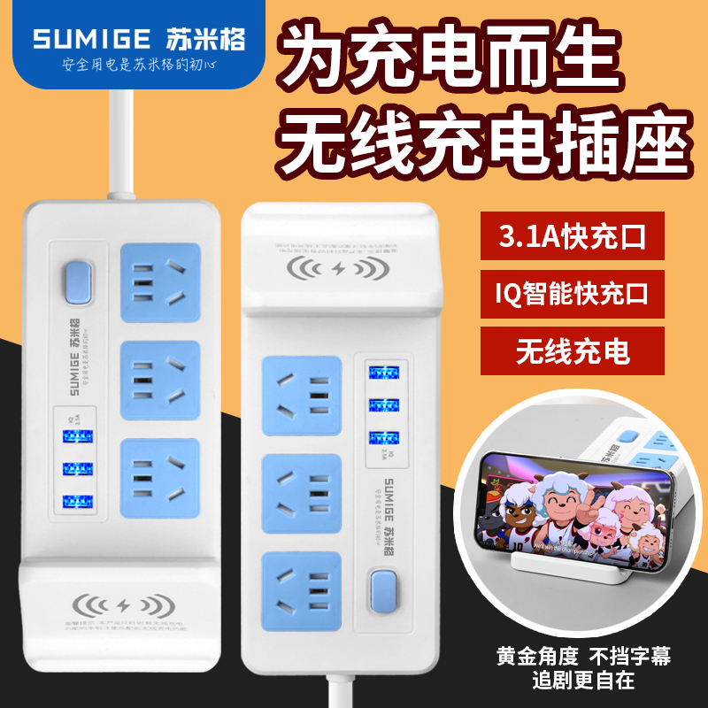 【无线充电】60W插座转换器插头插排插线板拖接线板USB扩展长带线